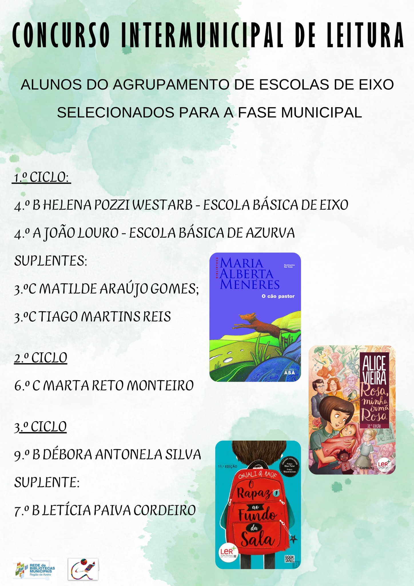 Já estão apurados os alunos que vão representar o AEEixo no Concurso Intermunicipal de Leitura, em Aveiro.