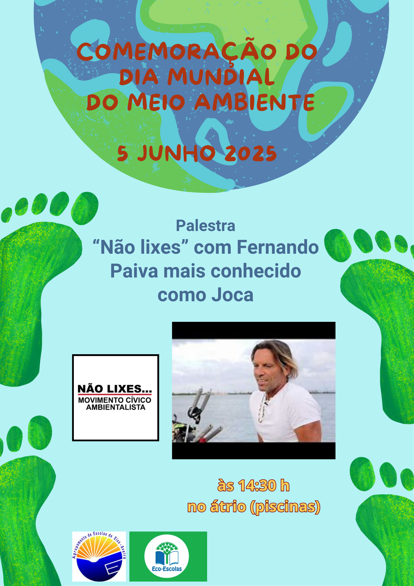No dia 5 de junho 2025 das 14:30 às 16h, os alunos dos 6º, 7º e 8º anos tem a oportunidade de assistir, no átrio da escola SEDE, à palestra "Não lixes" com Fernando Paiva, mais conhecido como Joca.