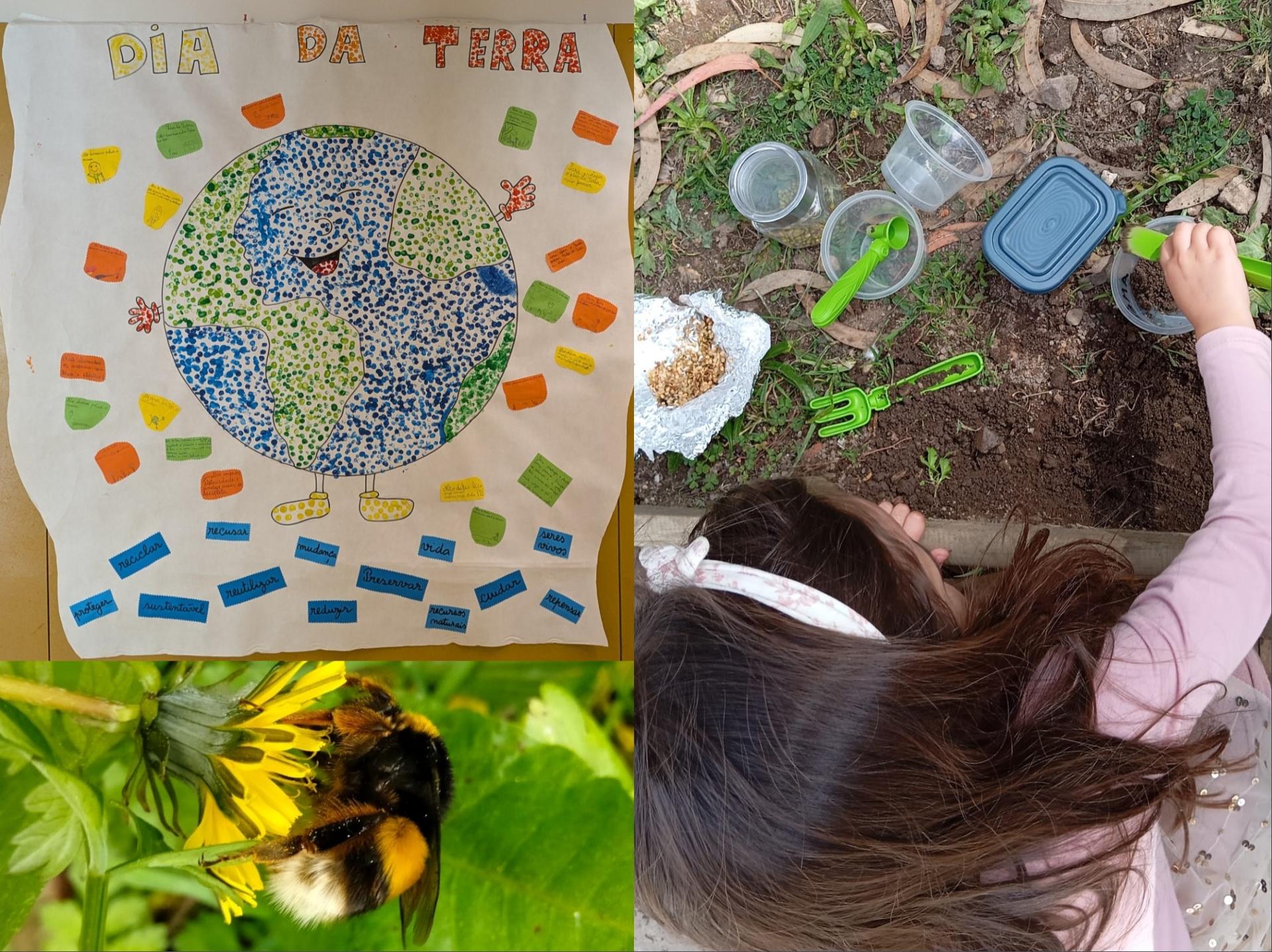 No âmbito do Projeto Eco-Escolas, os alunos elaboraram um cartaz com mensagens apelativas para a preservação da Terra, fizeram plantações na horta e puderam observar o processo da polinização!