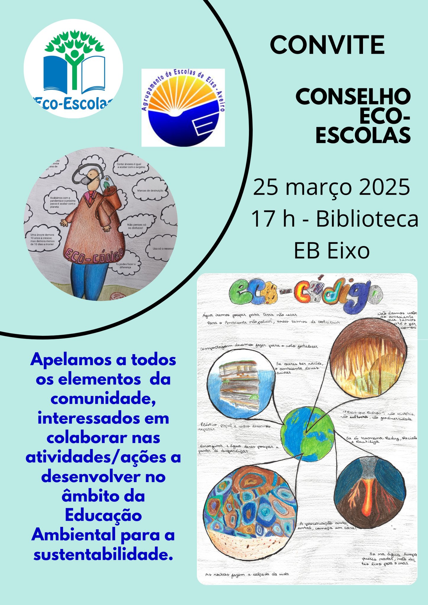 O AEEixo convida a comunidade escolar a participar no próximo Conselho Eco-Escolas, que terá lugar na próxima terça-feira, dia 25 de março, pelas 17 horas, na Biblioteca da Escola Sede.