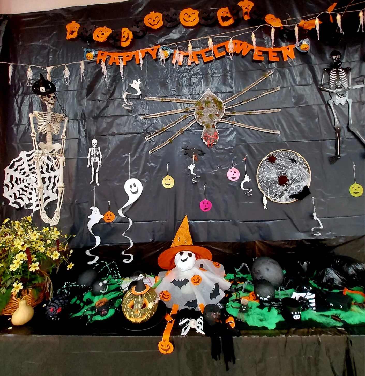Fantasmas, aranhas, abóboras e bruxas invadiram o cenário, onde não faltaram doces e lanches partilhados.