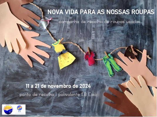 No âmbito do projeto “Espaço Solidário” e em parceria com a Equipa de Integração d@ Alun@ do AEEixo decorrerá, a partir de segunda-feira, uma campanha de recolha de roupas usadas, designada por “Nova vida para as nossas roupas”, apelando à reutilização e à solidariedade.