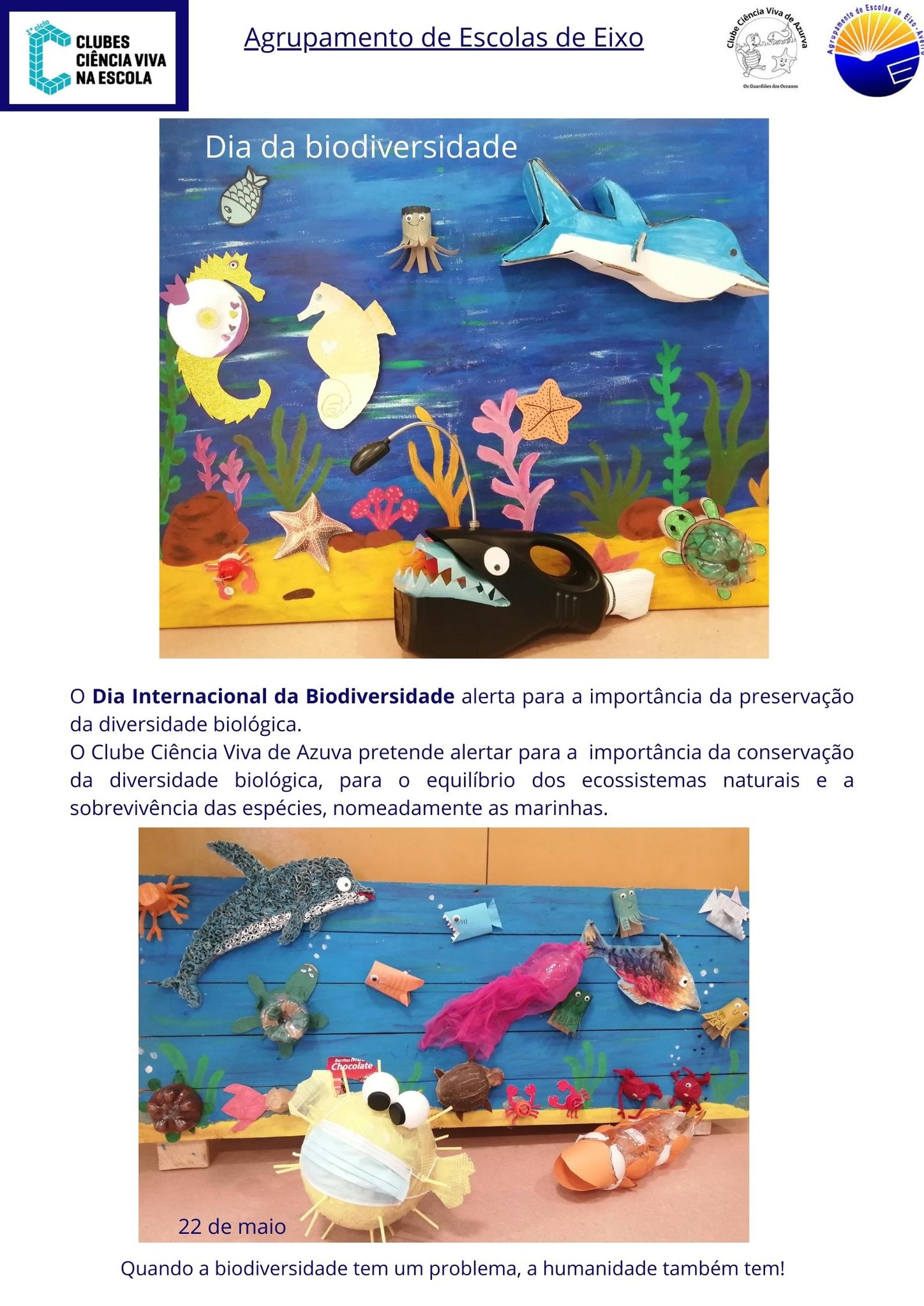 O Clube Ciência Viva de Azurva assinalou a data com um cartaz alusivo ao ecossistema marinho e à necessidade da sua preservação… ficou bonito, não ficou...?