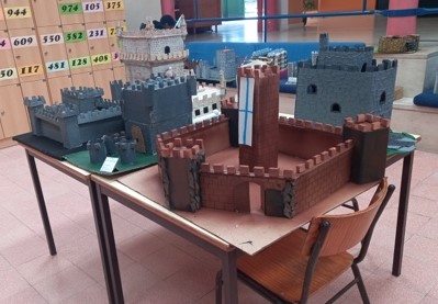 Os castelos encontram-se em exposição no átrio da escola sede.