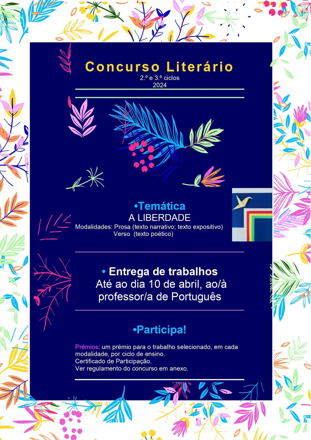 Agora é tempo de partilhares os teus textos. Participa no concurso literário a decorrer! (Informações no cartaz)