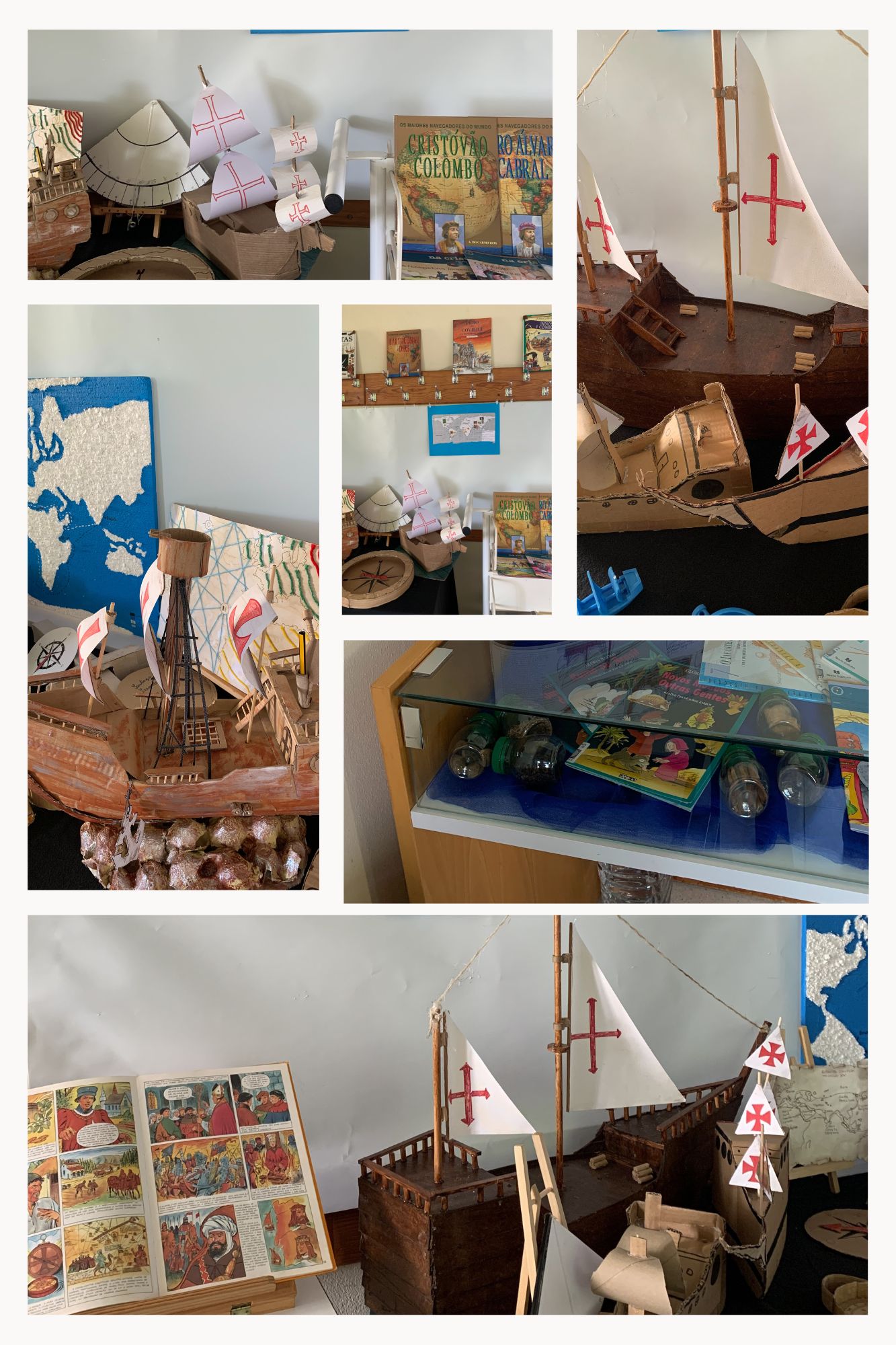 A mostra comporta ainda parte do acervo da Biblioteca Escolar relacionado com o tema e alguns dos produtos trazidos nestas viagens.