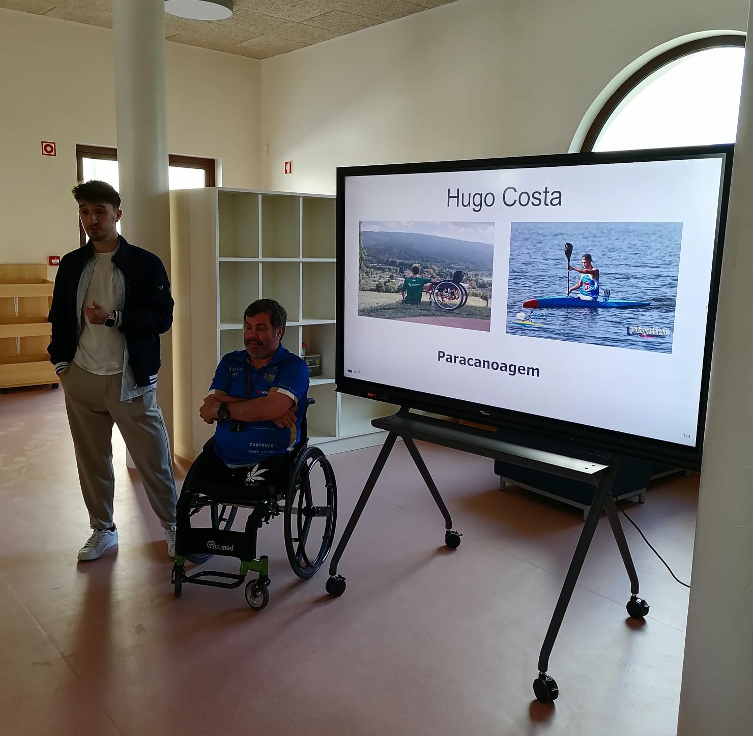 A atividade “Desporto para todos”, promovida pelo Departamento de Educação Especial, acolheu nas Escolas de Eixo e de Azurva os atletas Hugo Costa e José Barbosa, praticantes de Paracanoagem.