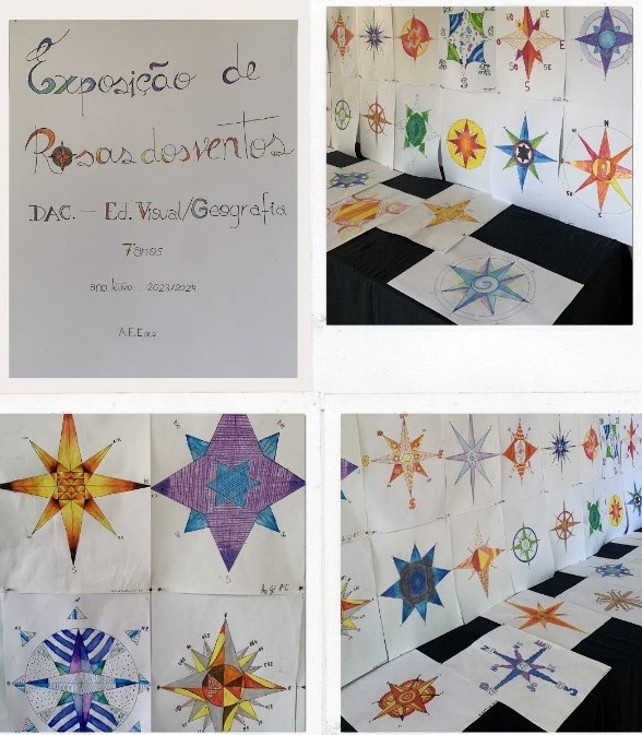 Está patente, na Biblioteca Escolar do AEEixo, uma exposição de Rosas dos Ventos, com trabalhos elaborados pelos alunos do sétimo ano de escolaridade.