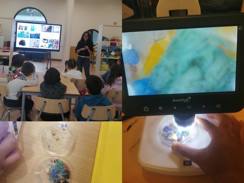 A ilustre convidada alertou os alunos para esta problemática dos oceanos e promoveu a observação ao microscópio de microplásticos e de areias presentes no oceano.