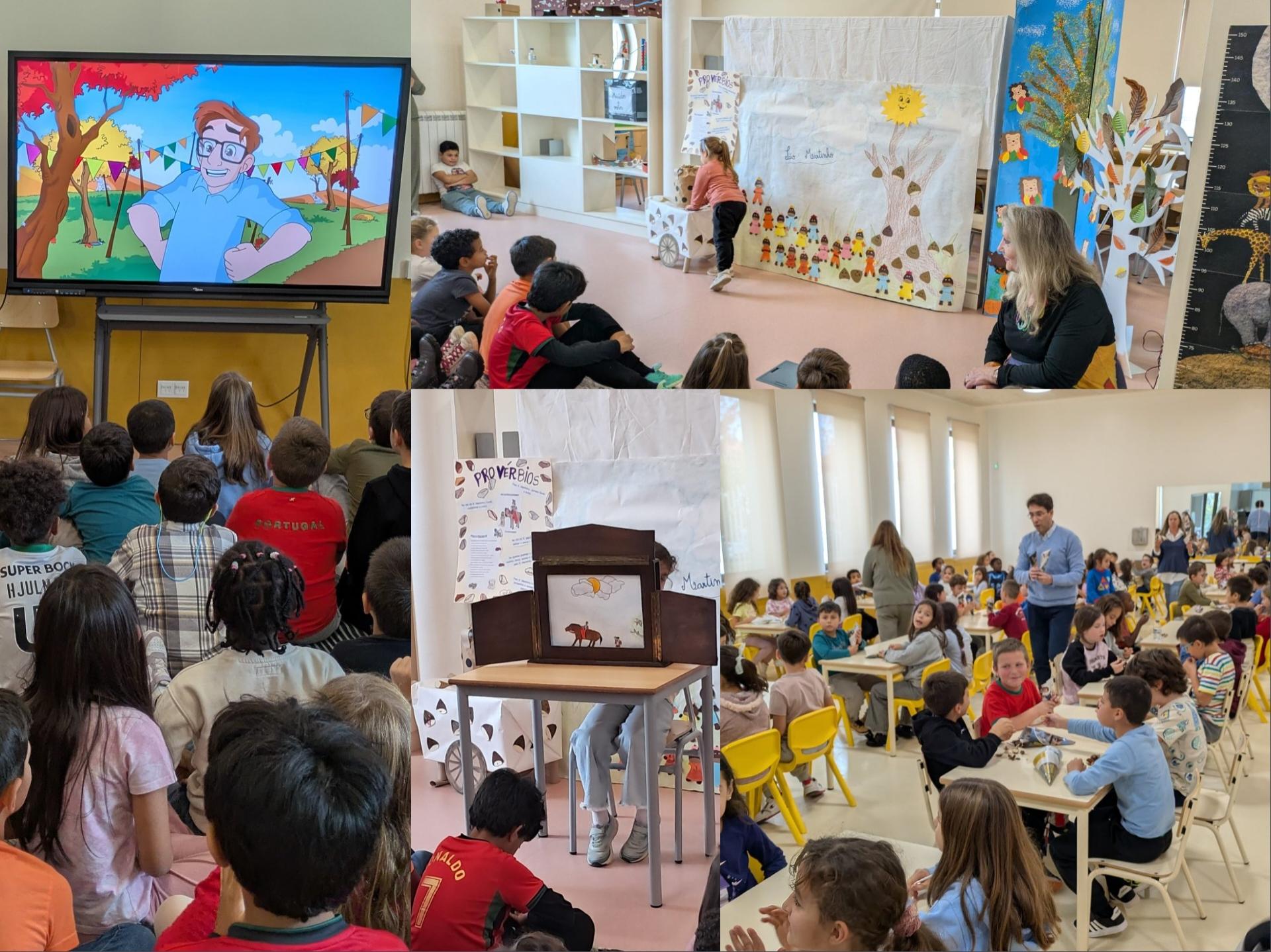 Houve tempo para dramatizações da “História da Maria Castanha” e da encantadora “Lenda de São Martinho”, contada através do teatro Kamishibai e em filme, bem como para canções, danças e muita animação!