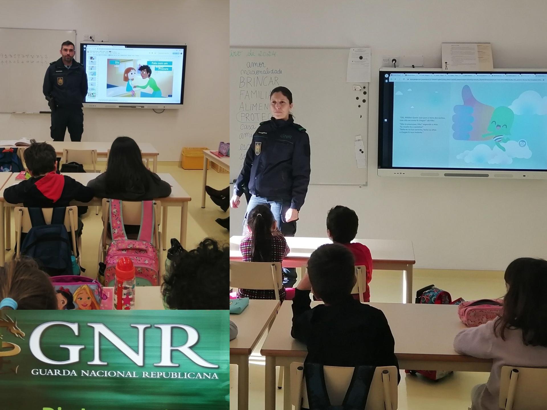 A Escola de Azurva recebeu, no passado dia 18 de janeiro, Guardas da Guarda Nacional Republicana que trouxeram aos mais pequenos práticas de sensibilização para diversos temas que a todos preocupam.