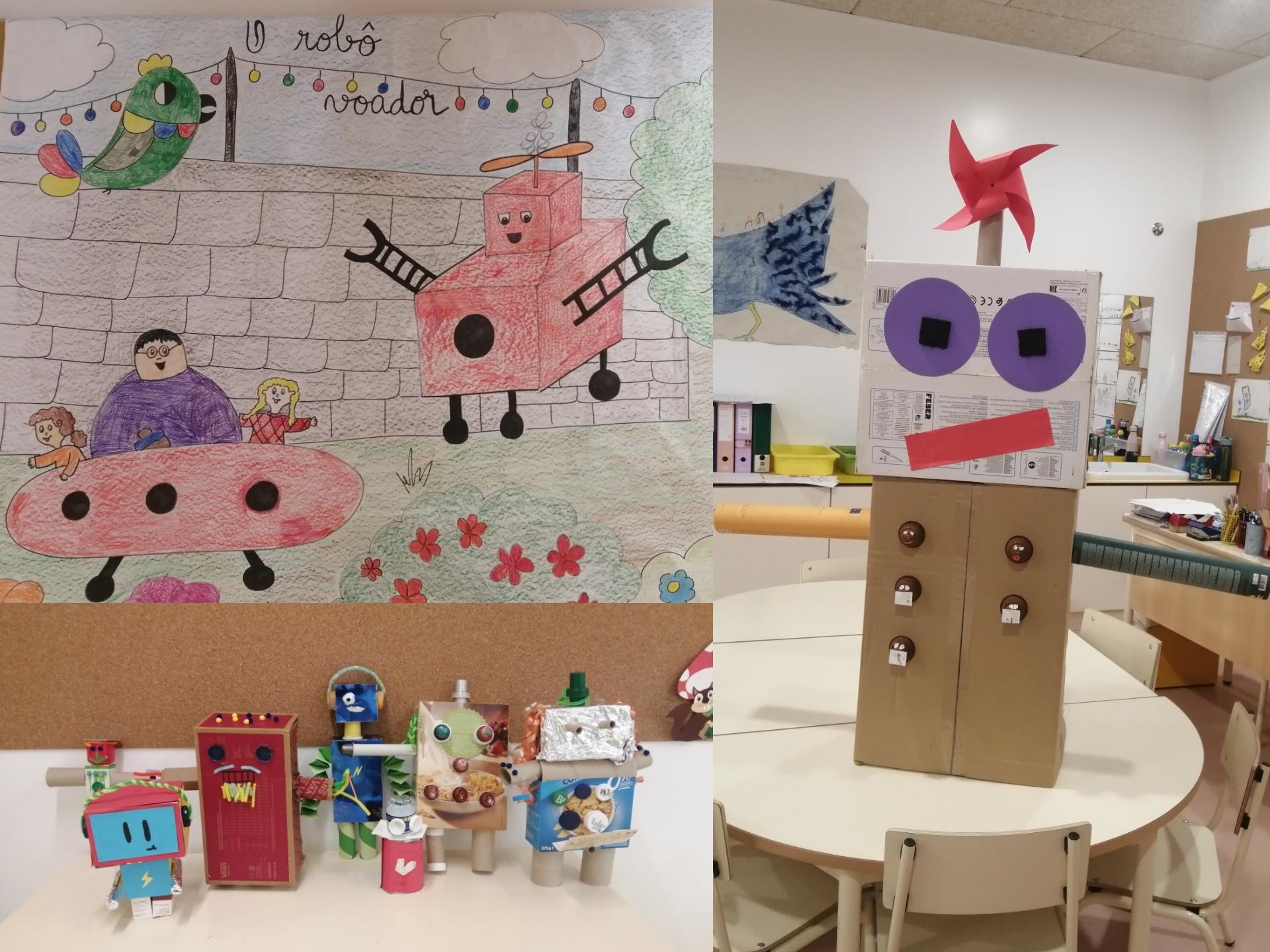 Depois da viagem pela história os alunos puderam construir robôs com materiais reutilizáveis, numa aventura onde do faz-de-conta e a imaginação deram origem a uma bela construção!