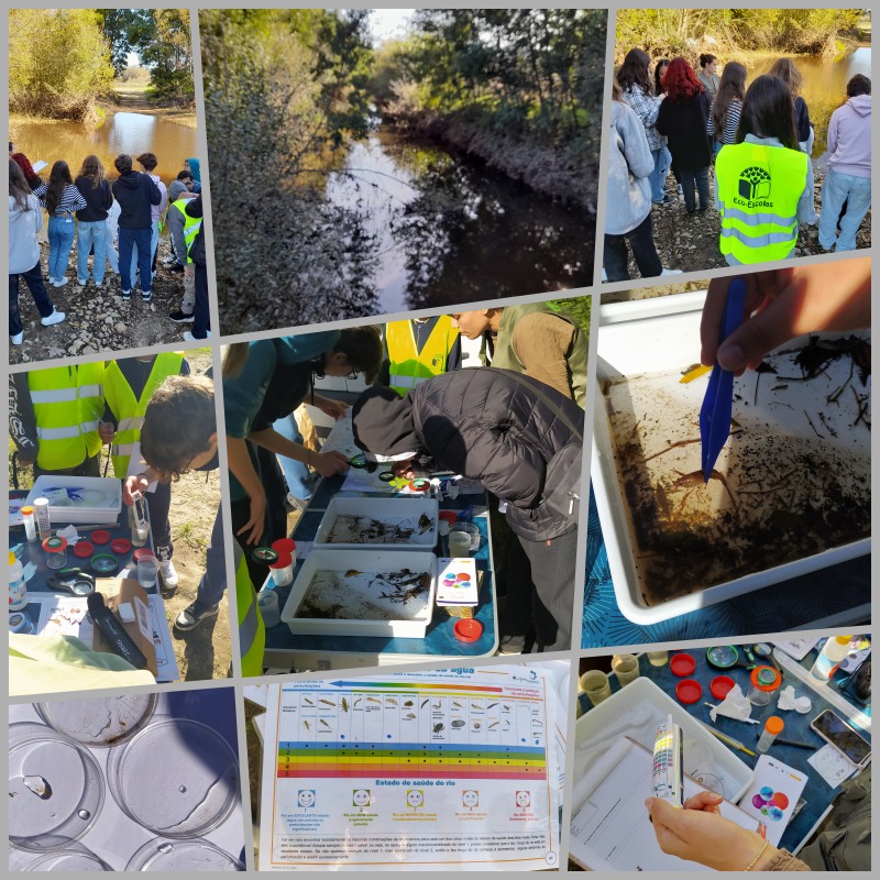 Divididos em dois grupos, um dirigiu-se à ribeira junto ao parque do Forno Cerâmico e outro grupo à ribeira junto a parque da Balsa. Observaram a flora e a fauna do local e efetuaram testes aos fatores abióticos e parâmetros físico-químicos, analisando o estado de saúde da linha de água.