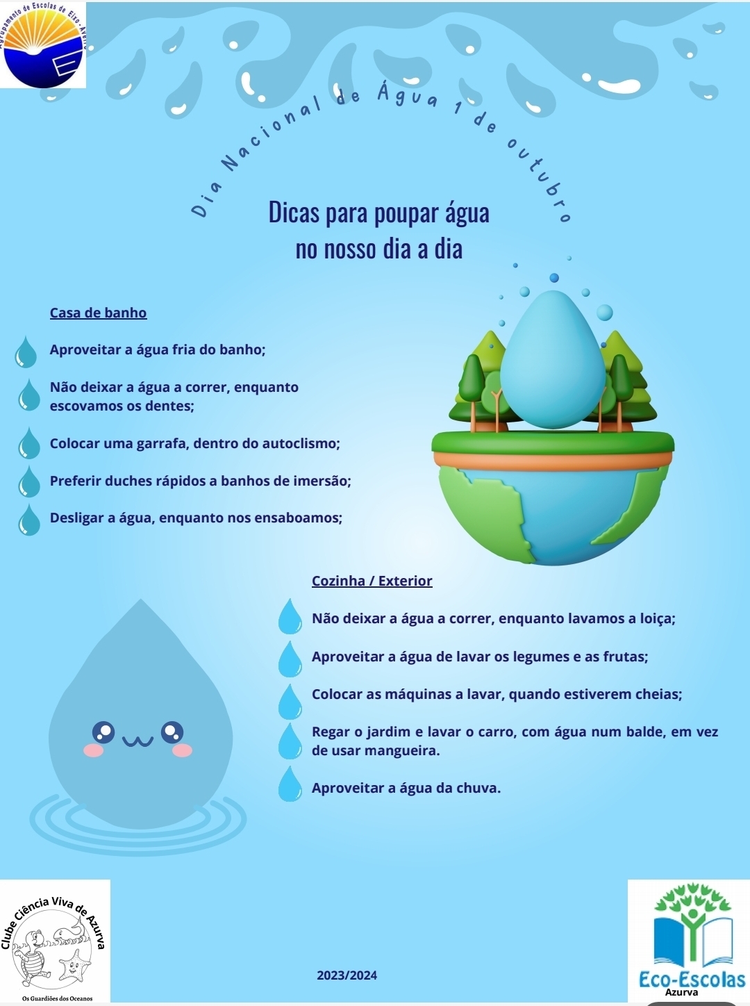 A comemoração do dia nacional da água (1 de outubro) foi trabalhado dessa forma e os alunos elaboraram um cartaz com dicas de poupança de água.