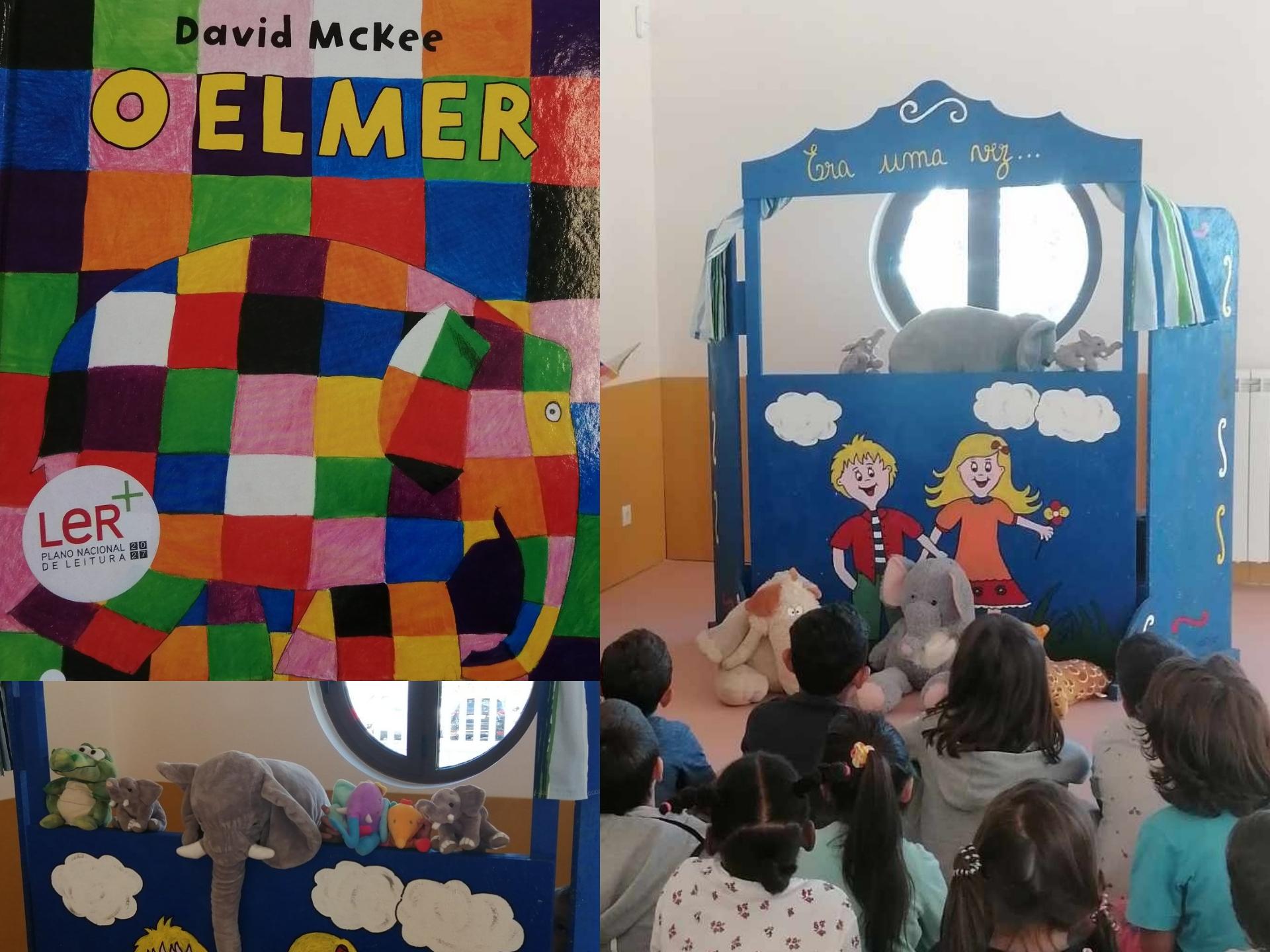 Deste modo, a turma do segundo ano dramatizou a história do "Elmer", aos alunos do primeiro ano, no fantocheiro.