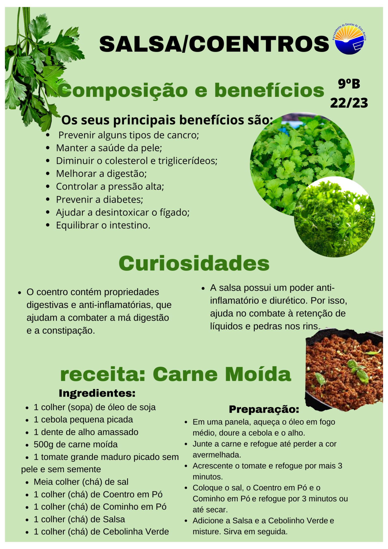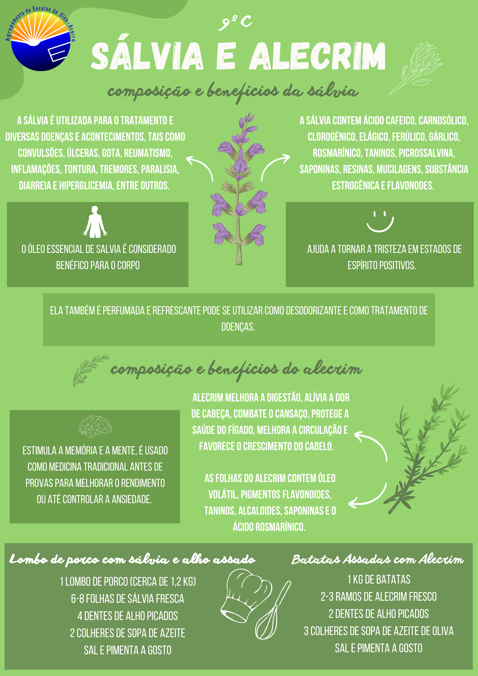 Durante o mês de março e no âmbito do Projeto “Saber+ Saúde” foram criados mais 2 pósteres digitais, sobre ervas aromáticas como a salsa, coentros, sálvia e alecrim, que resultaram da pesquisa por parte das turmas do 9ºB e 9ºC.