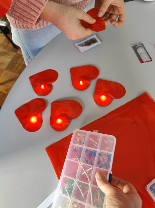 Para celebrar esta data, os alunos do Clube de Ciência Viva decoraram a entrada da escola e da sala de professores com corações elaborados digitalmente e cortados na impressora de corte Cameo. Alguns desses corações foram eletrificados com lâmpadas Led pondo em prática o que já tinham aprendido anteriormente.