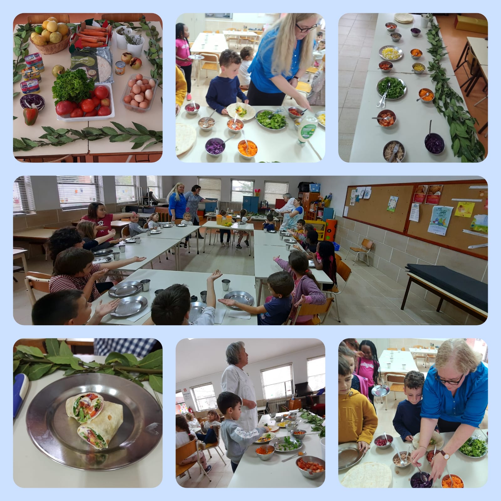 Os encarregados de educação colaboraram com os ingredientes: atum, ovos, alface, tomate, milho doce, couve roxa, cenoura, romã e ervas aromáticas.