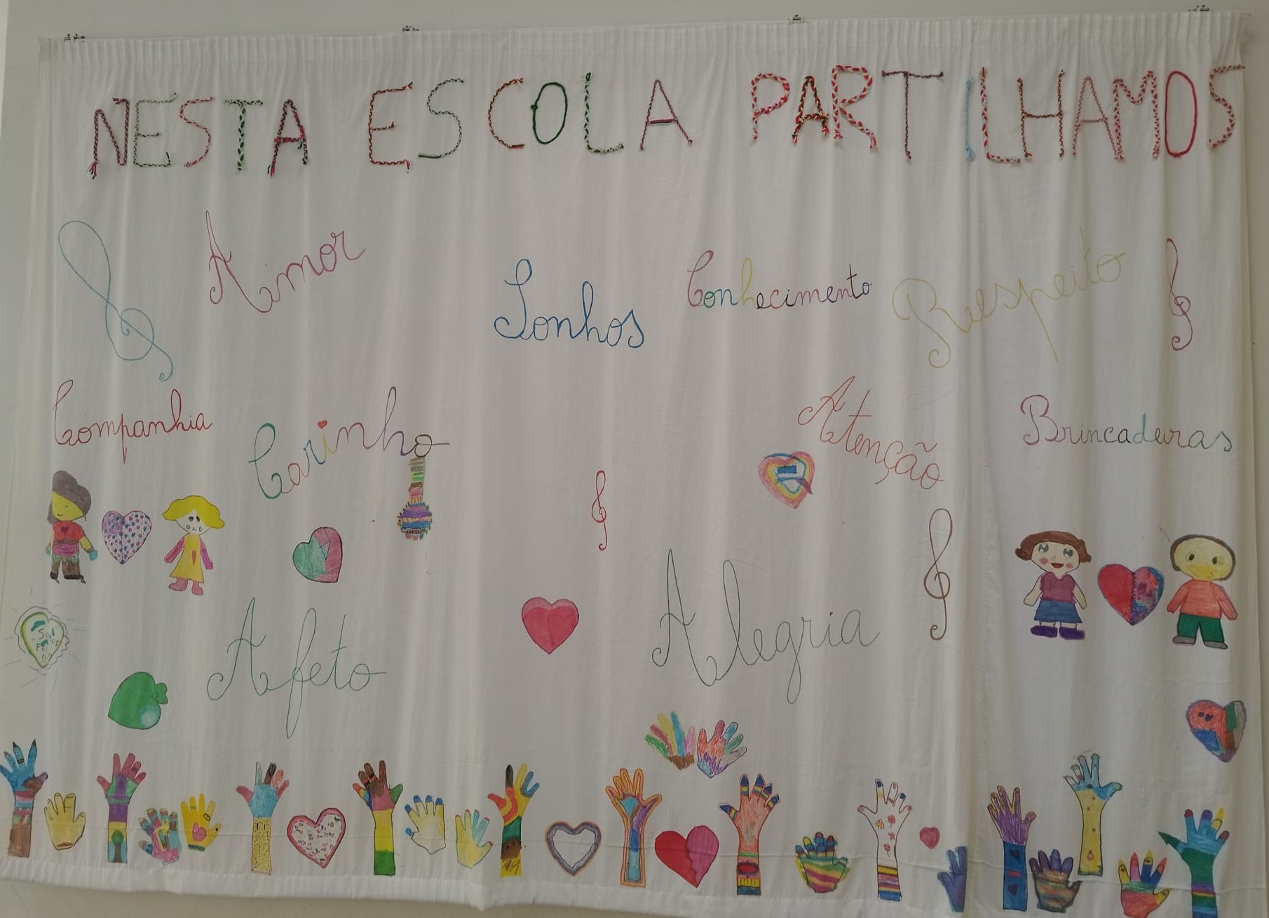 O mural traduz-se num convite a toda a comunidade escolar: parar, olhar e sentir – uma chamada constante à importância de cuidar de si e dos outros e de celebrar as alegrias partilhadas.