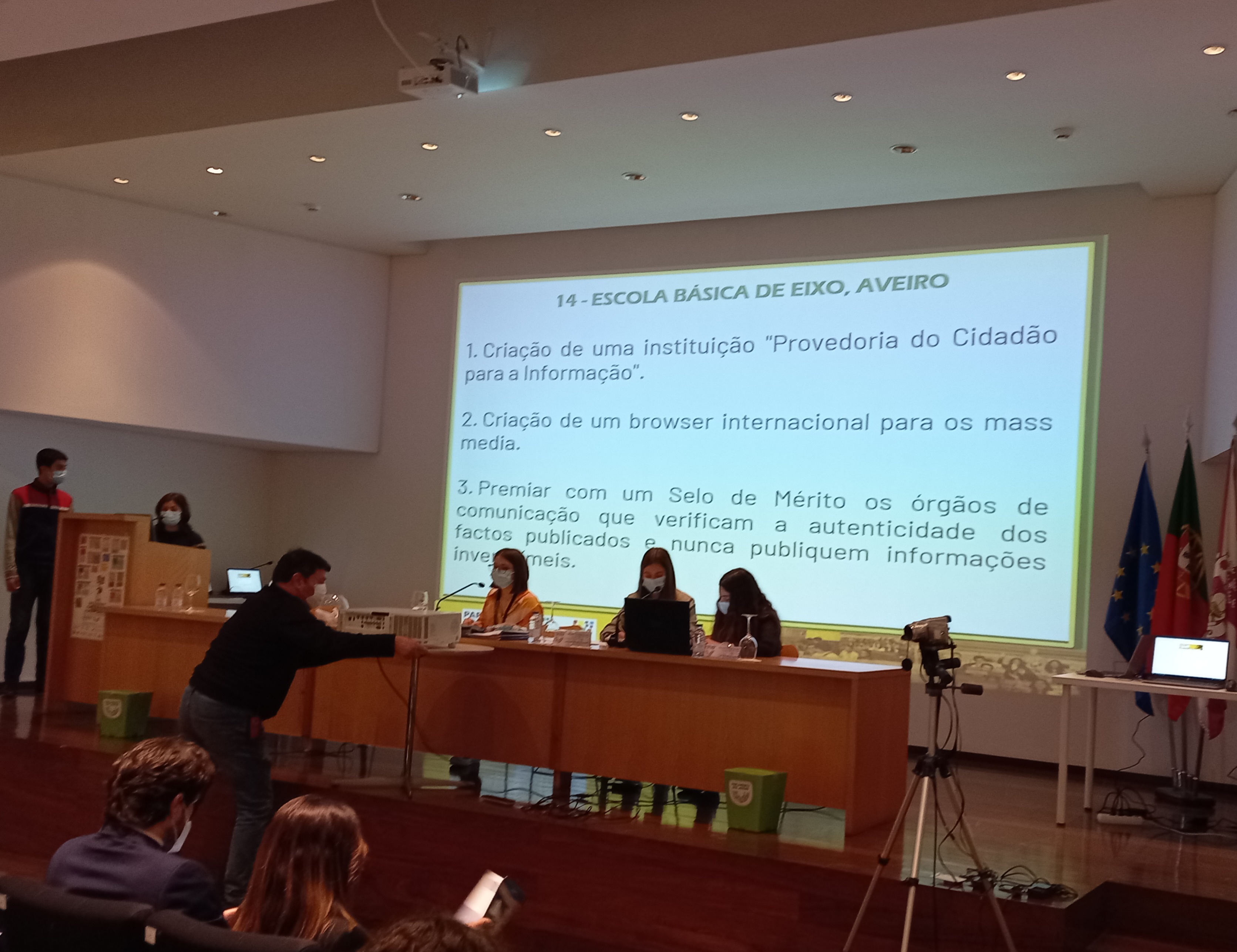 Os deputados eleitos, pelo AEEixo, à sessão distrital do Parlamento dos Jovens iniciaram os seus trabalhos, apresentando os seus contributos contra as 'Fake News'.
