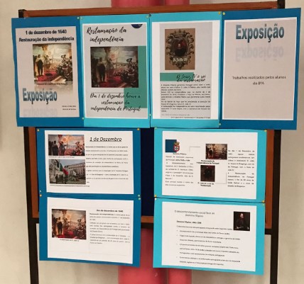 Para a comemoração do dia 1 de dezembro foram desenvolvidas atividades e elaborados trabalhos pelos alunos do 8º ano, no âmbito das disciplinas de História, Português e Educação Visual. Pesquisa, elaboração de cartazes, preparação e montagem de uma exposição, elaboração e distribuição de marcadores de livros e escrita de textos deram corpo à questão lançada: “No dia 1 de dezembro assinala-se um feriado histórico, sabes porquê?”.
