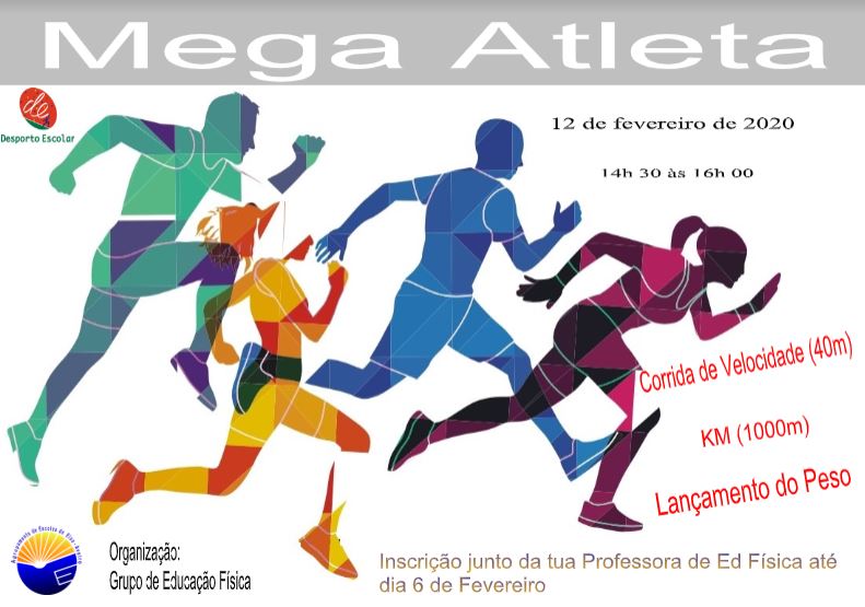 No passado dia 12 de fevereiro, entre as 14.30h e as 16.30h, realizou-se a Fase Escola do Mega Atleta, atividade inserida no Plano Anual de Atividades do Agrupamento. O Mega Atleta é uma atividade de atletismo, composta pelas provas de corrida de velocidade (40m), corrida de resistência (km), lançamento do peso e salto em comprimento. Esta última não se realizou, em virtude da escola não possuir espaço específico para a realização da prova. A atividade decorreu conforme planificada e organizada, tendo envolvido quase todas as turmas do 2º e 3º ciclos do ensino básico, atingindo-se os propósitos da mesma, apuramento para a fase distrital e sensibilização da comunidade educativa para a importância da prática desportiva. Foram apurados os alunos que irão representar a escola na fase distrital, no dia 4 de março em Vagos. Os participantes no salto em comprimento foram apurados através da obtenção do 3ºlugar na prova de corrida de velocidade (40m). Todos os alunos estão de parabéns pela sua participação!"