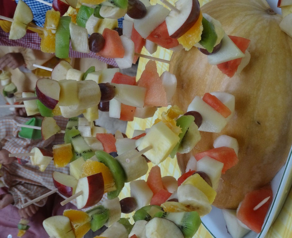 Na escola EB2,3 foram oferecidas espetadas de fruta aos alunos...