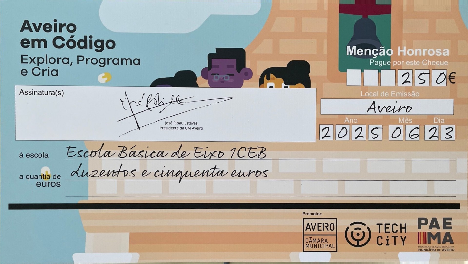 Os alunos das turmas A e C do 3.º ano participaram no Concurso «Aveiro em Código - Explora, Programa e Cria», promovido pela Câmara Municipal de Aveiro, no âmbito da Plataforma UBBU, tendo a turma C obtido uma Menção Honrosa e um prémio de 250,00 €.