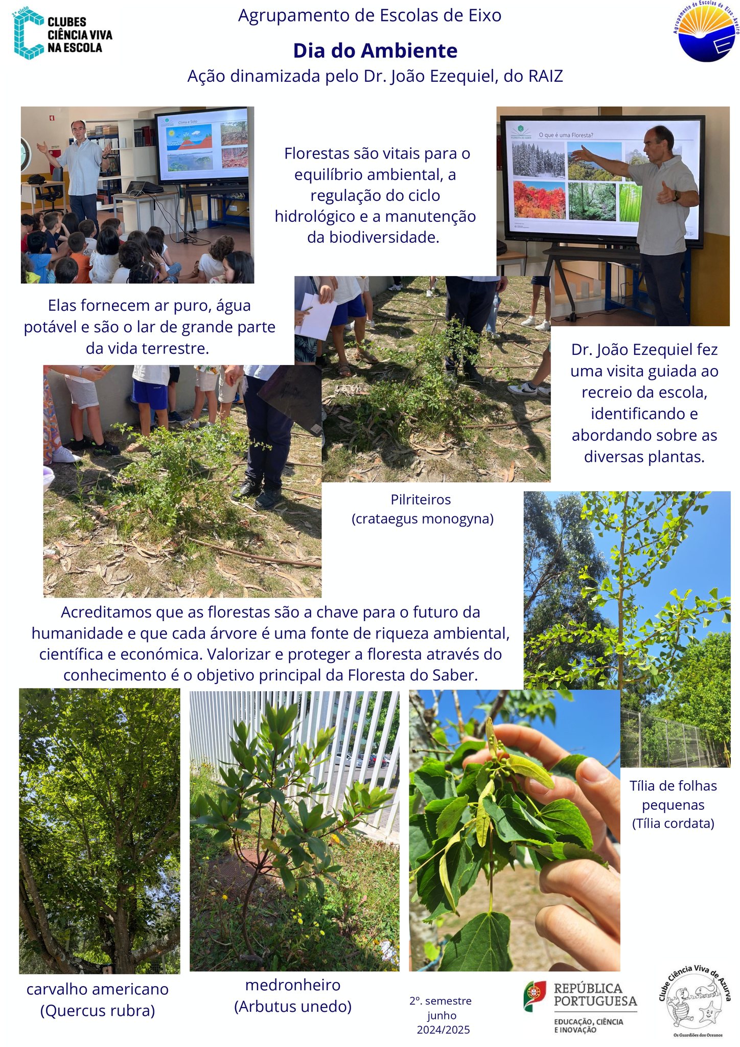 A ação, que decorreu no âmbito da comemoração do Dia do Ambiente contou com atividades diversas, tais como a identificação das árvores e dos arbustos da escola, no âmbito da comemoração do Dia do Ambiente.