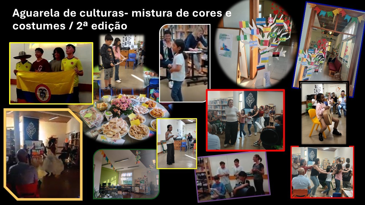 Pelo segundo ano consecutivo, alunos do AEEixo e famílias reuniram-se na Biblioteca Escolar da Escola sede para uma noite cheia de cores, cultura e sabores, na atividade "Aguarela de Culturas - Mistura de Cores e Costumes 2ª Edição"!