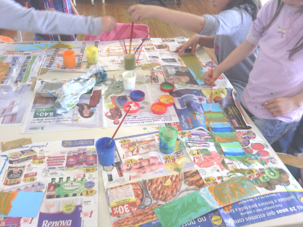 Os alunos do 1º e 2º ano realizaram flores de papel com pequenas mensagens e os alunos dos 3 e 4 anos fizeram um postal com uma rima....